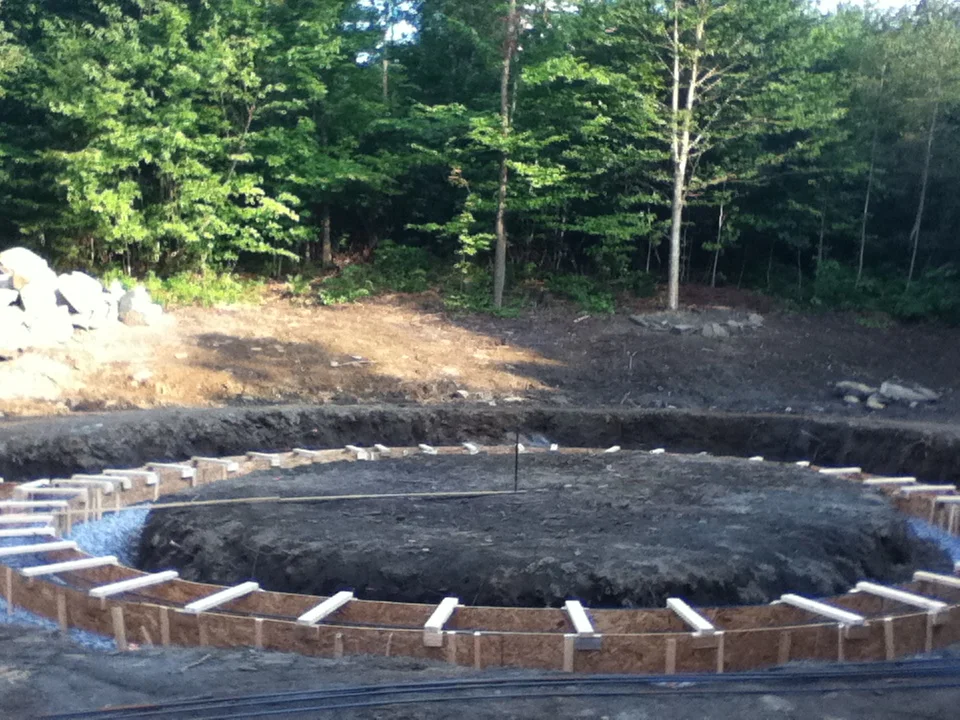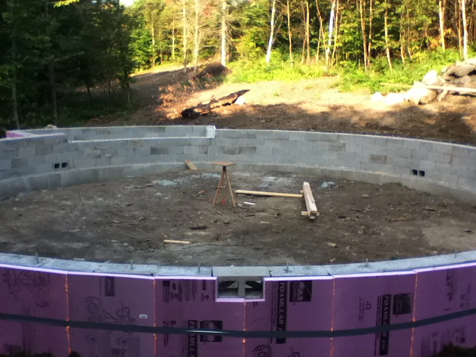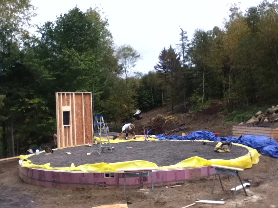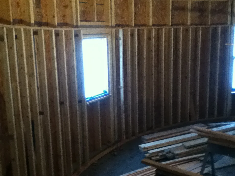Interior framing starts. Larson-truss, two-walled system is utilized, creating 10-12 inches of insulation. That is R36 - R44. The interior of the whole home is curved all the way around.