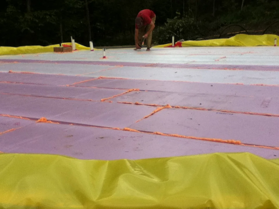Two-ply of rigid foam making R20 under the floor and yellow stago or radon barrier