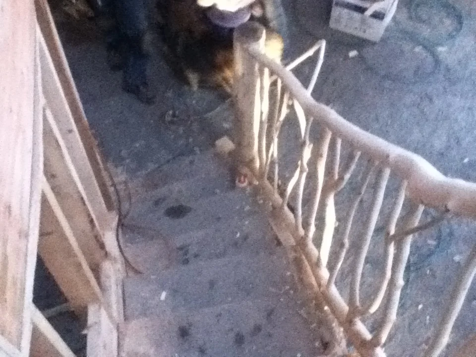 Every staircase needs a handrail, my first log handrail. Had to find a pair of logs with a similar curve to the stair