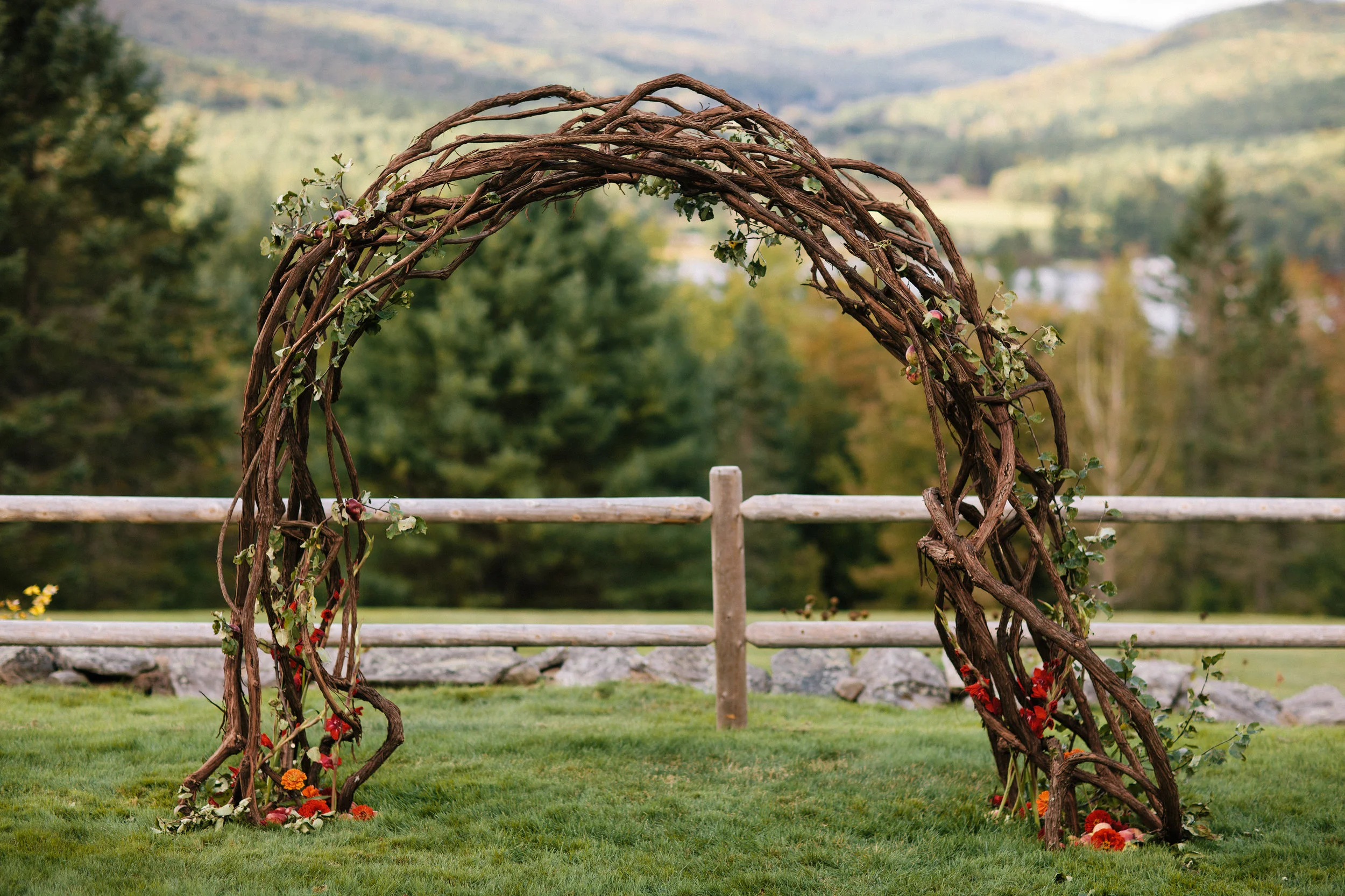 Here is a wedding arbor I constructed for my friends. Woven for wild grape vines, this self-supporting arbor is both avant garde and whimsical providing a showpiece for an exceptional wedding.